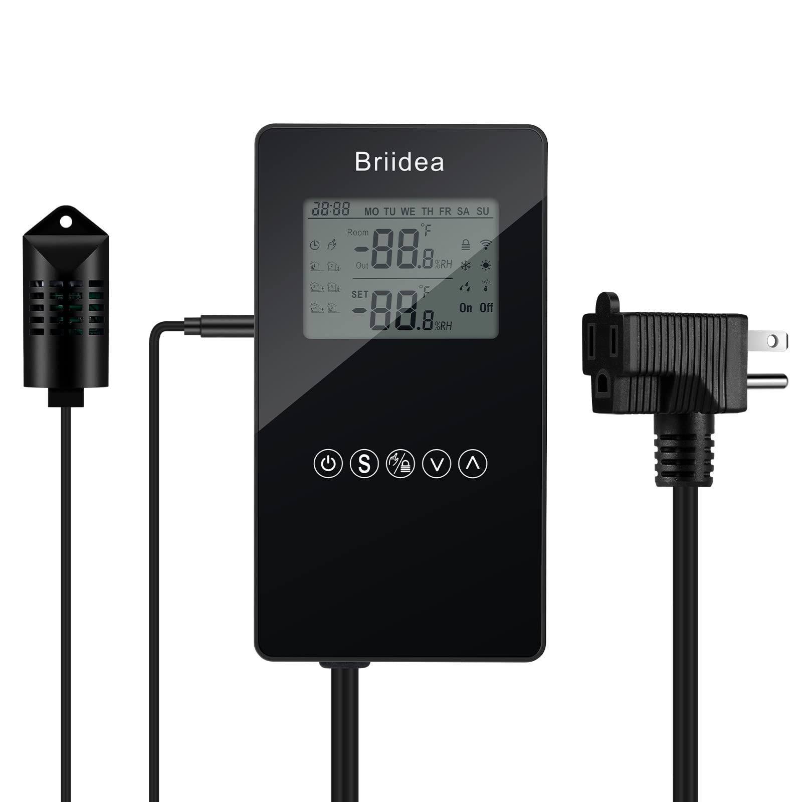 Humidity Controller, Pre-Wired Humidistat Humidifier Dehumidifier with LCD Display High Accuracy Humidity Sensor, Ideal for Greenhouse Mushroom Grow Tent